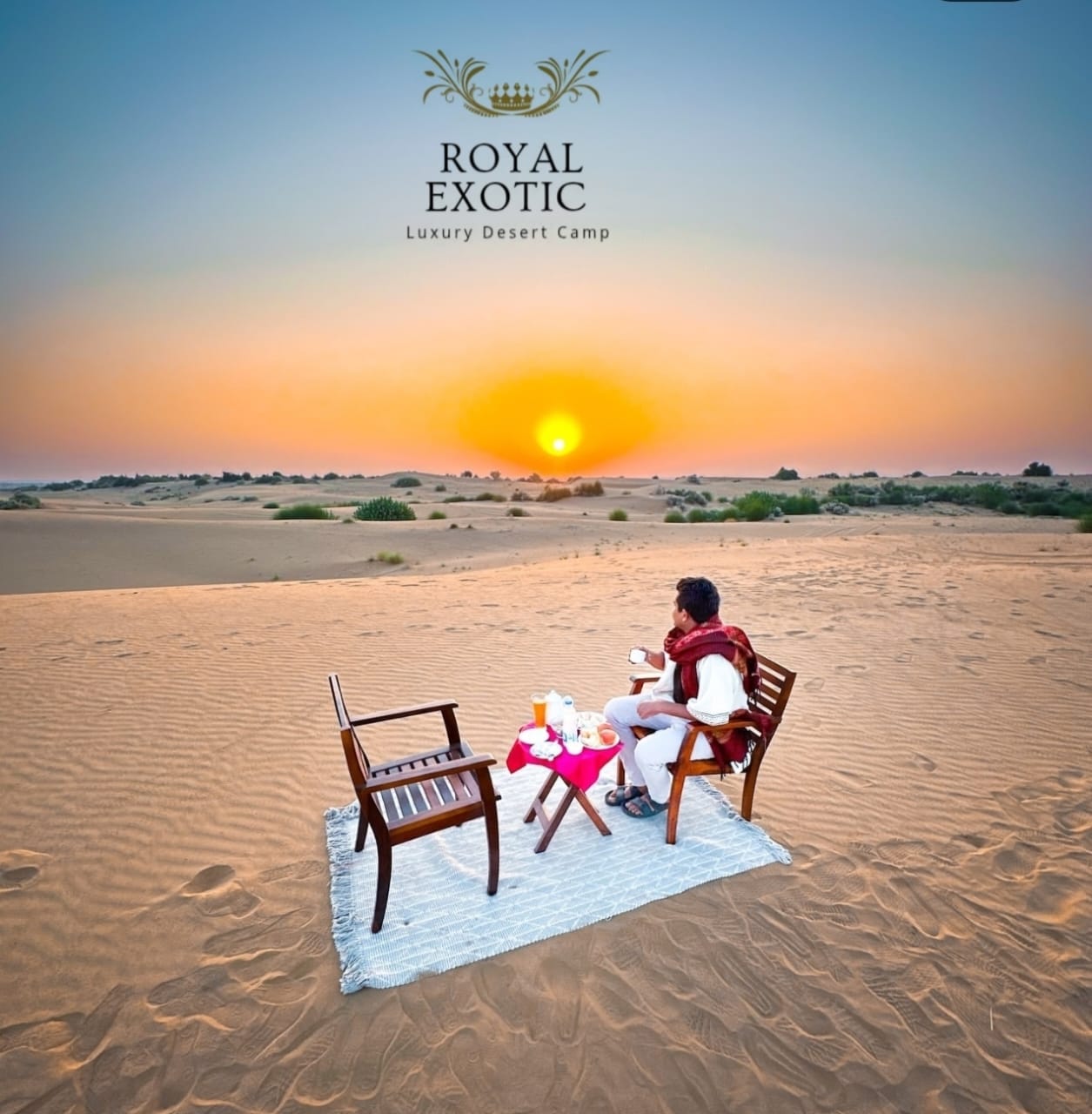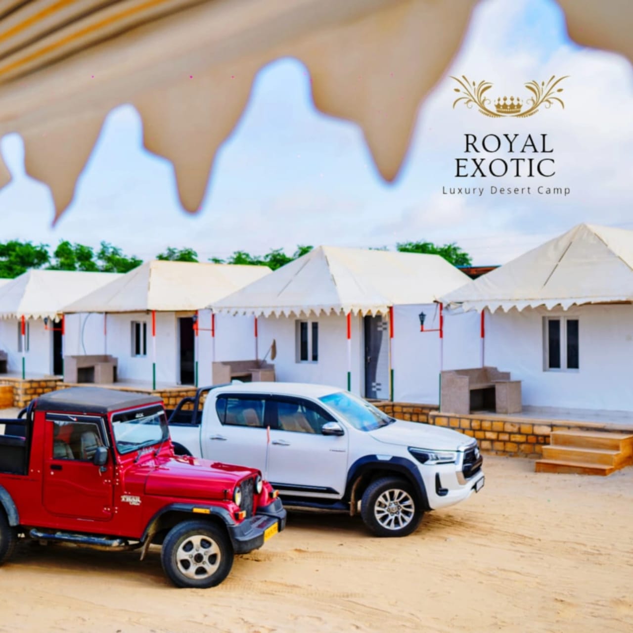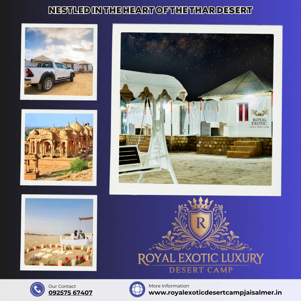 Royal Exotic Desert Camp is a luxurious desert camp located in the enchanting city of Jaisalmer, Rajasthan, India. Nestled in the heart of the Thar Desert, this camp offers a unique and unforgettable desert experience that allows visitors to immerse themselves in the rich culture and natural beauty of the region. The camp is a remarkable blend of traditional Rajasthani architecture and modern amenities. It’s designed to provide guests with the ultimate desert adventure while ensuring their comfort and safety.